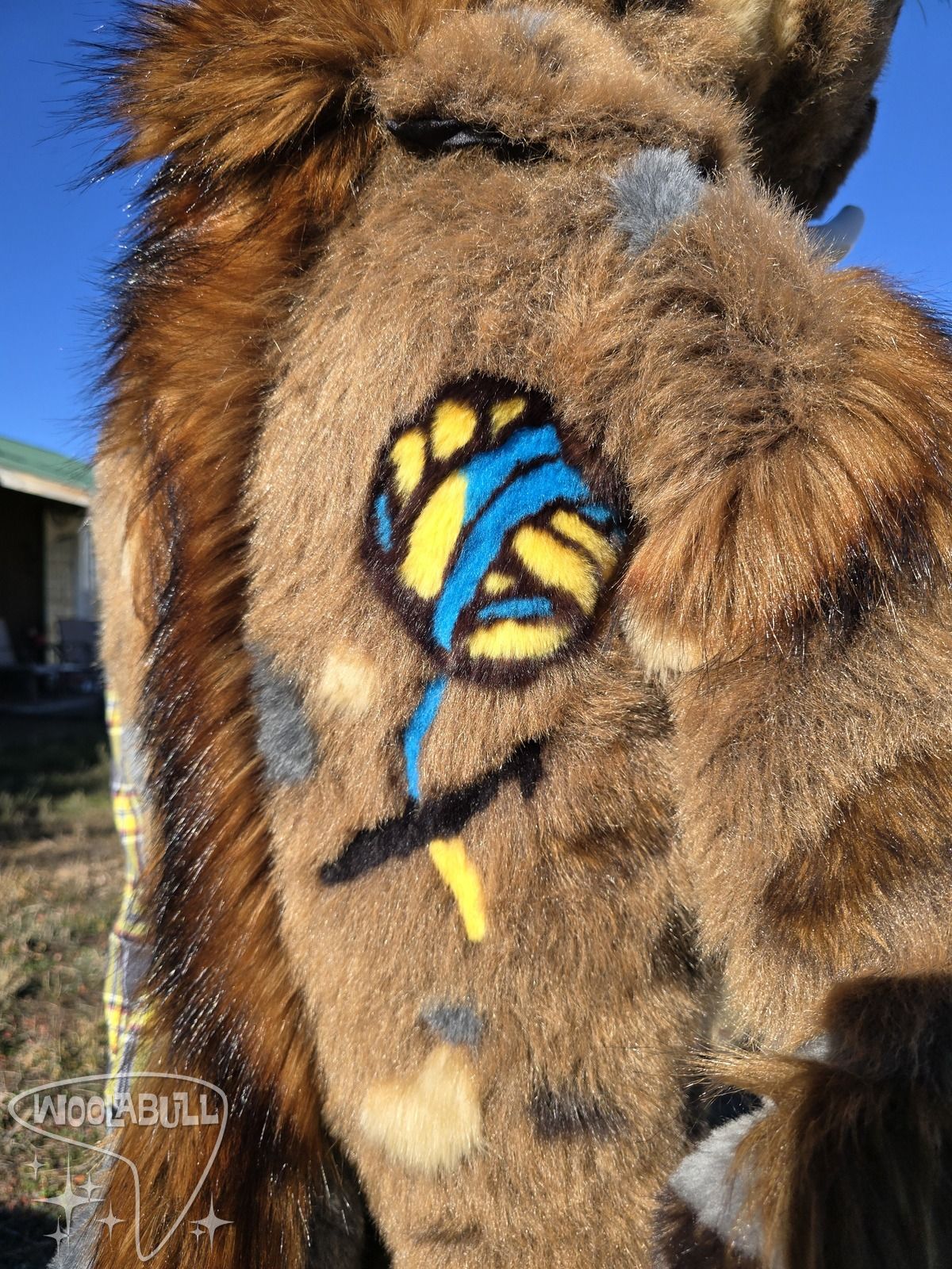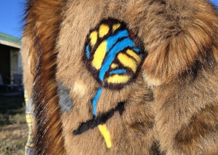 I am created with faux fur, and foam for the added chonk. 90% of me is hand sew, along with the rest being glue and other attachment methods.