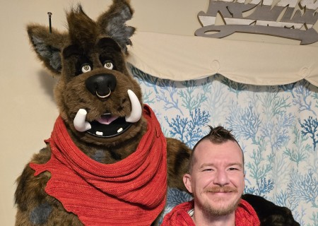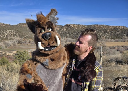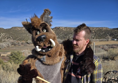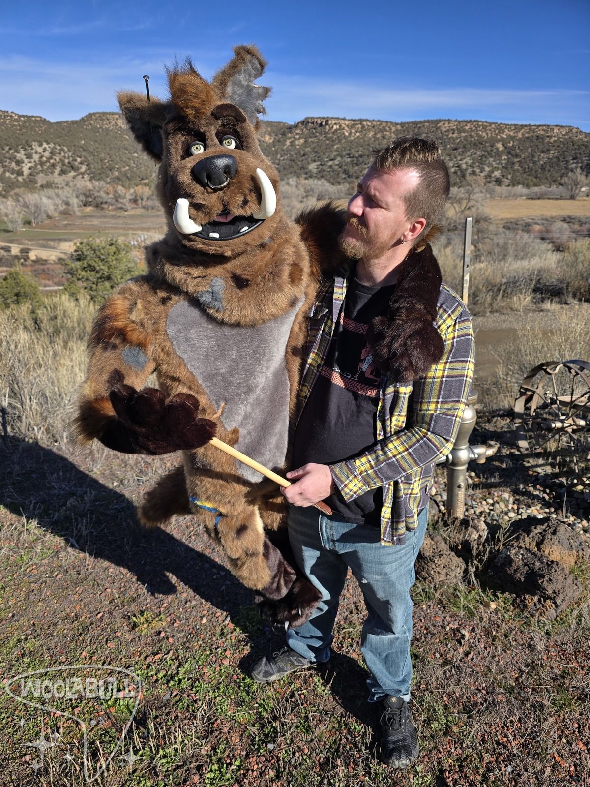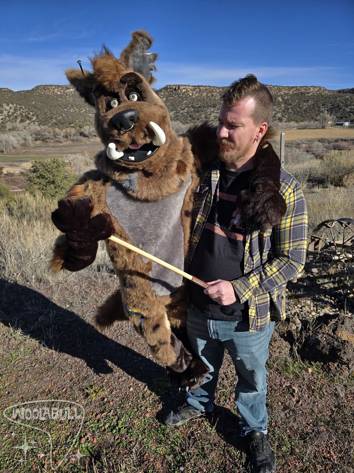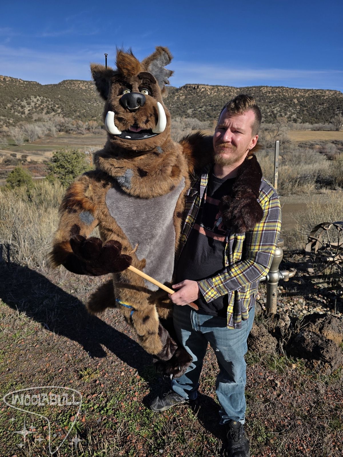 My name is Twine, I am a relatively large Gnoll hand puppet. Gnolls are fantasy critters that can be a mixup of hyenas, bears, and other things.