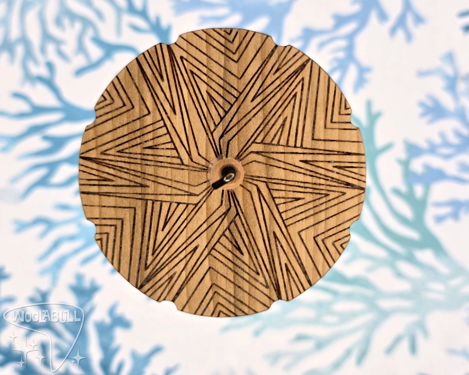 Each Drop Spindle is hand made from laser cutting my designs onto the front and back of 1/4" thick poplar wood, shaping the hardwood dowels, and shaping the hook. Your spindle is unique, so there may be subtle differences in measurements, however I do my best to stay within the listed information!