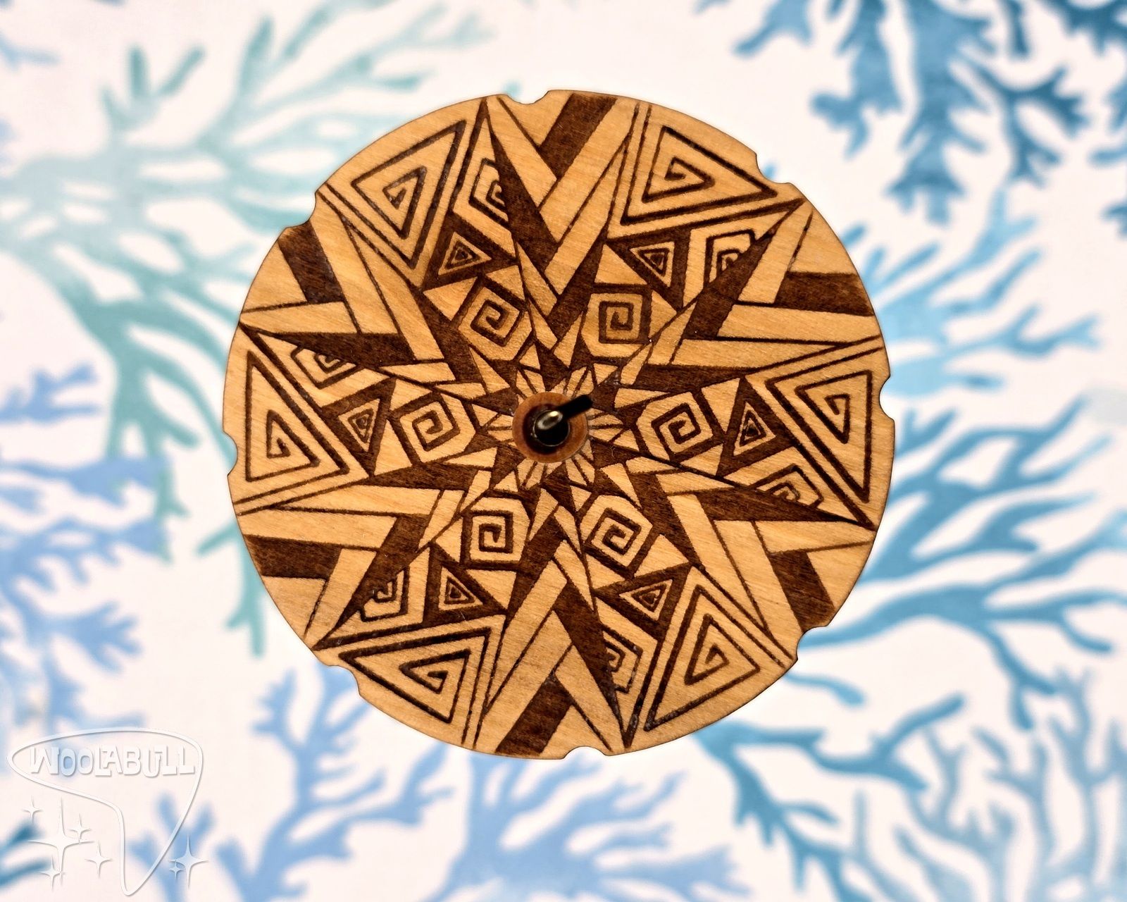 Many cultures in ancient history have spiral designs featured in their artwork. As a lover of the bronze age its hard to escape them, and thats awesome! The spiraled shapes make for a wild looking design on this spindle.