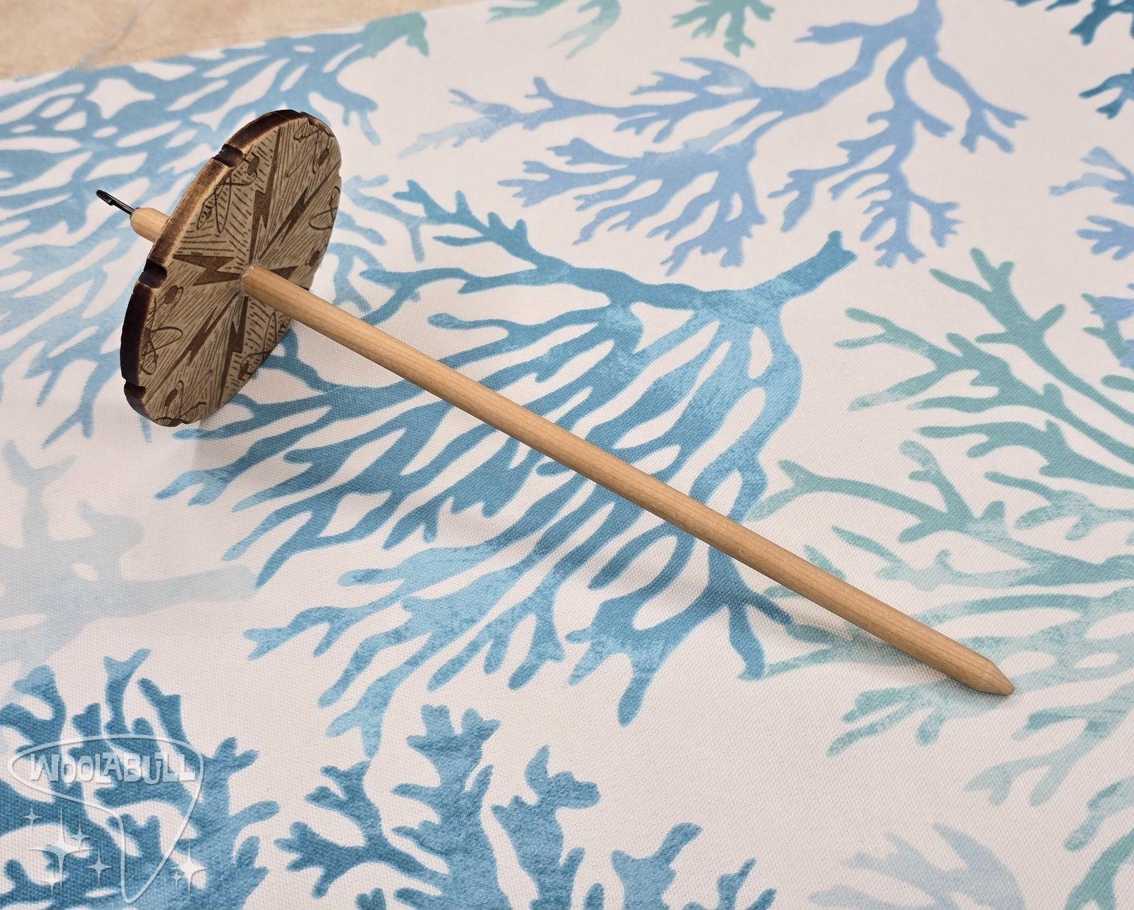 Each Drop Spindle is hand made from laser cutting my designs onto the front and back of 1/4" thick poplar wood, shaping the hardwood dowels, and shaping the hook. Your spindle is unique, so there may be subtle differences in measurements, however I do my best to stay within the listed information!