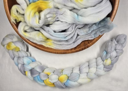 These Hand Painted braids are a great way to spin up something uniquely colorful! Spin it up for a sleek, soft yarn that highlights Merino wool from here in the USA.