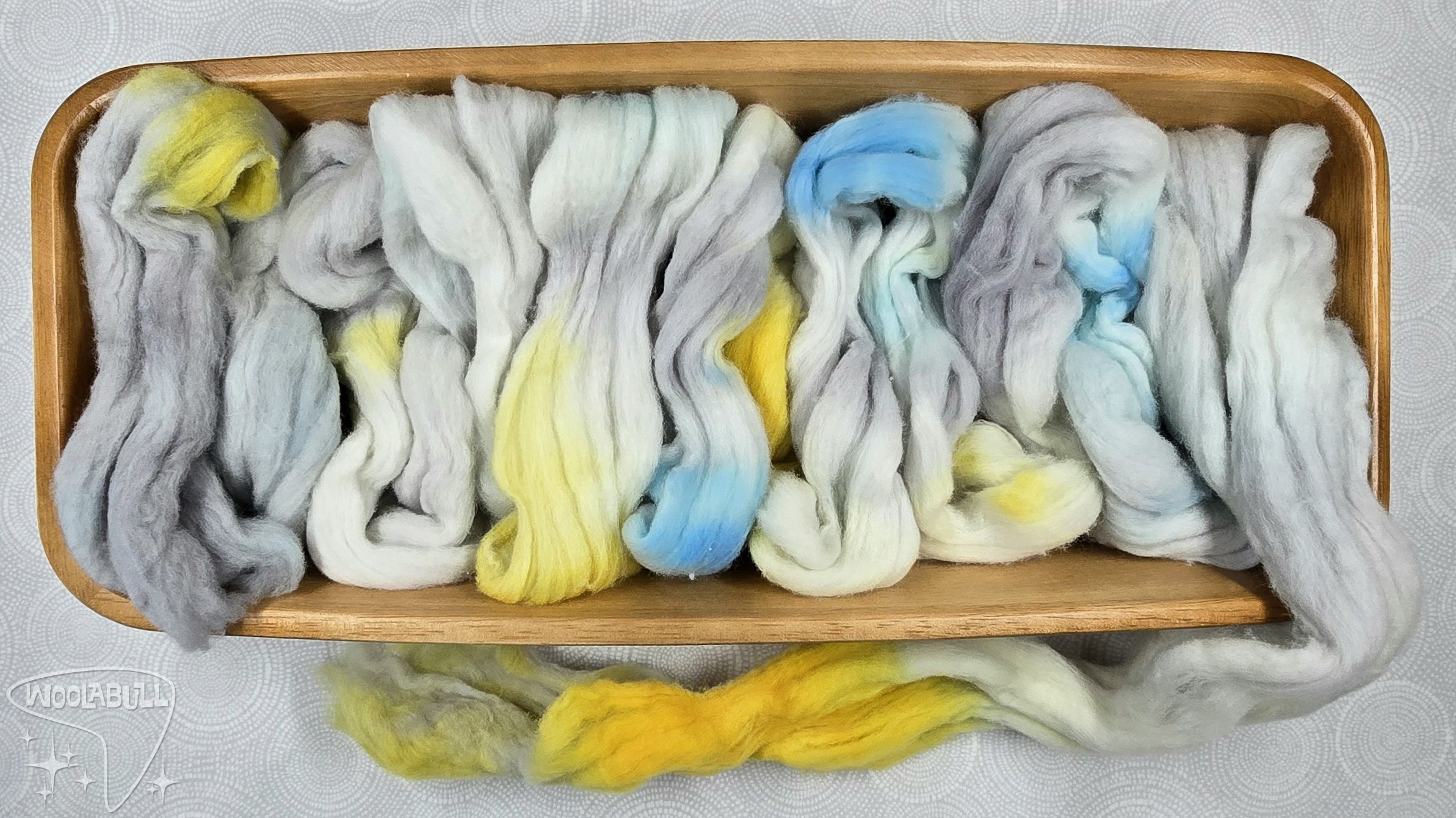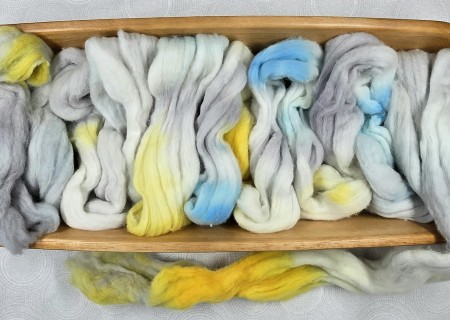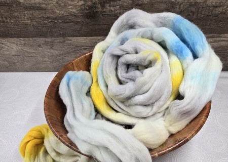Search Keywords: Merino Wool Top Roving White Soft Super Fine Hand Painted Spinning Braid Natural White Blue Yellow Gold Grey Gray