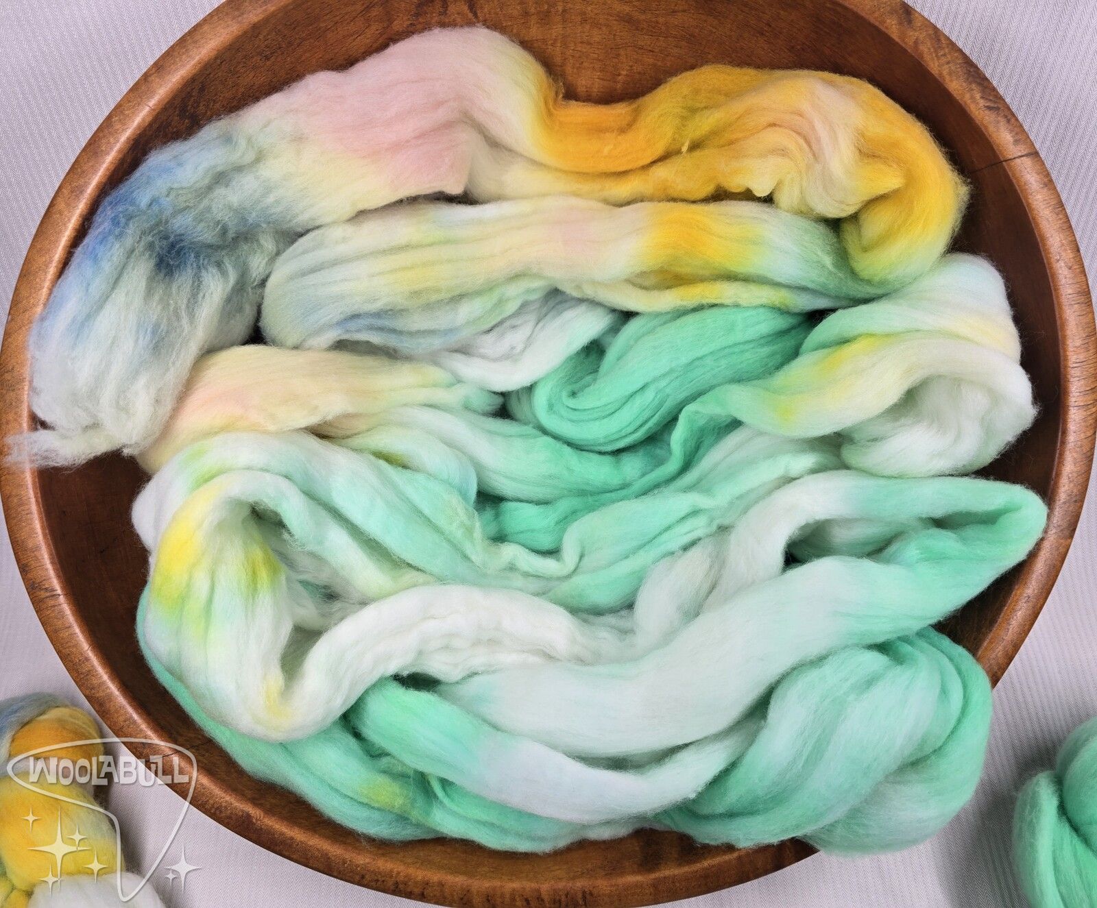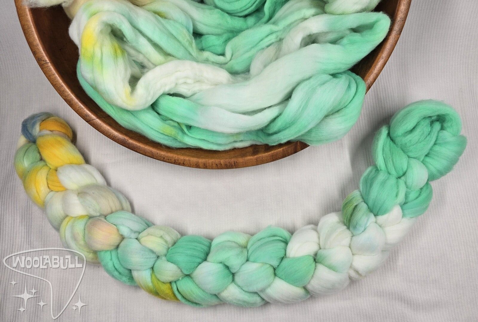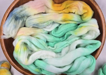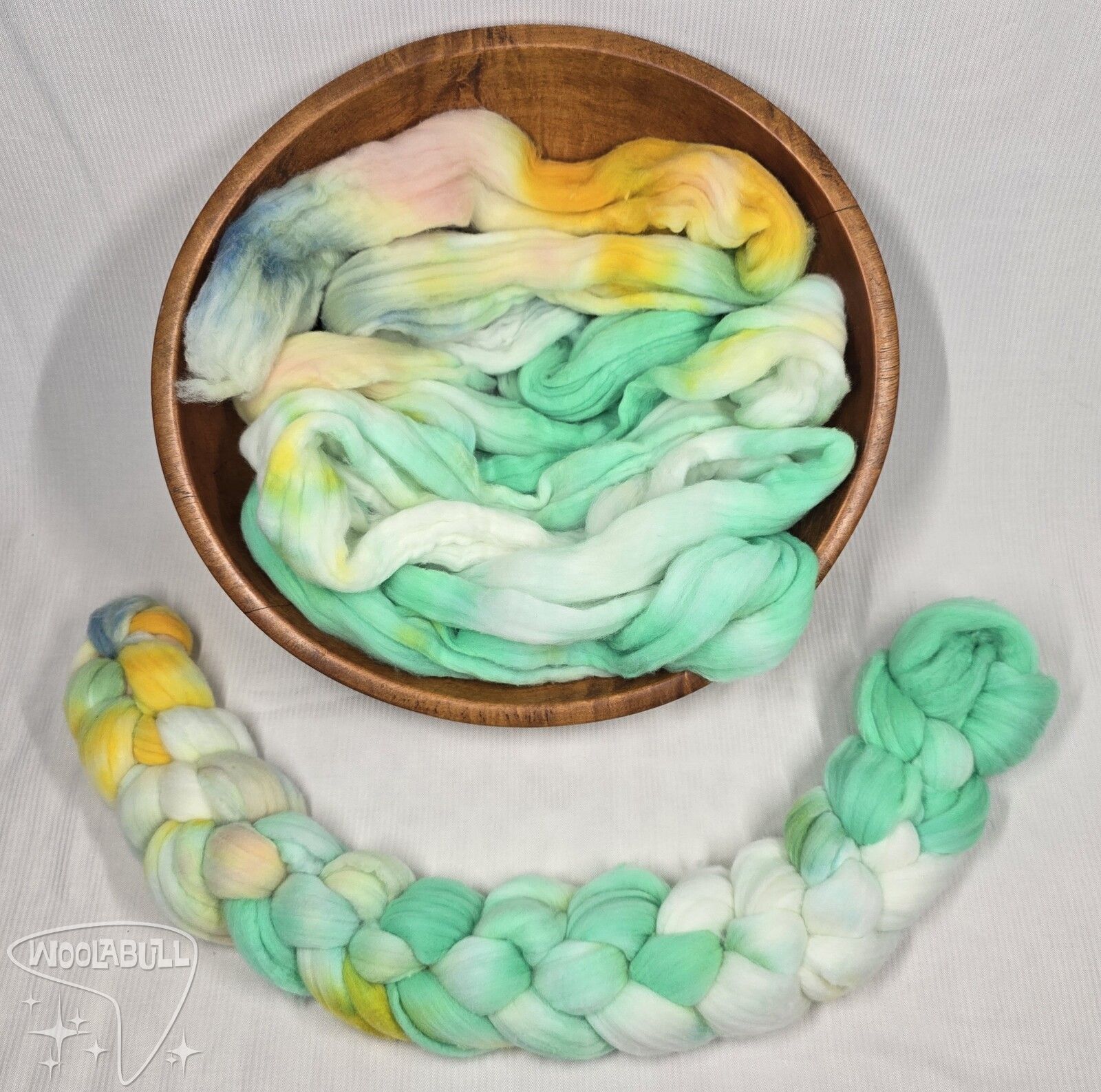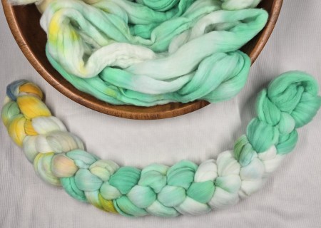 These Hand Painted braids are a great way to spin up something uniquely colorful! Spin it up for a sleek, soft yarn that highlights Merino wool from here in the USA.
