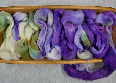 These Hand Painted braids are a great way to spin up something uniquely colorful! Spin it up for a sleek, soft yarn that highlights Merino wool from here in the USA.