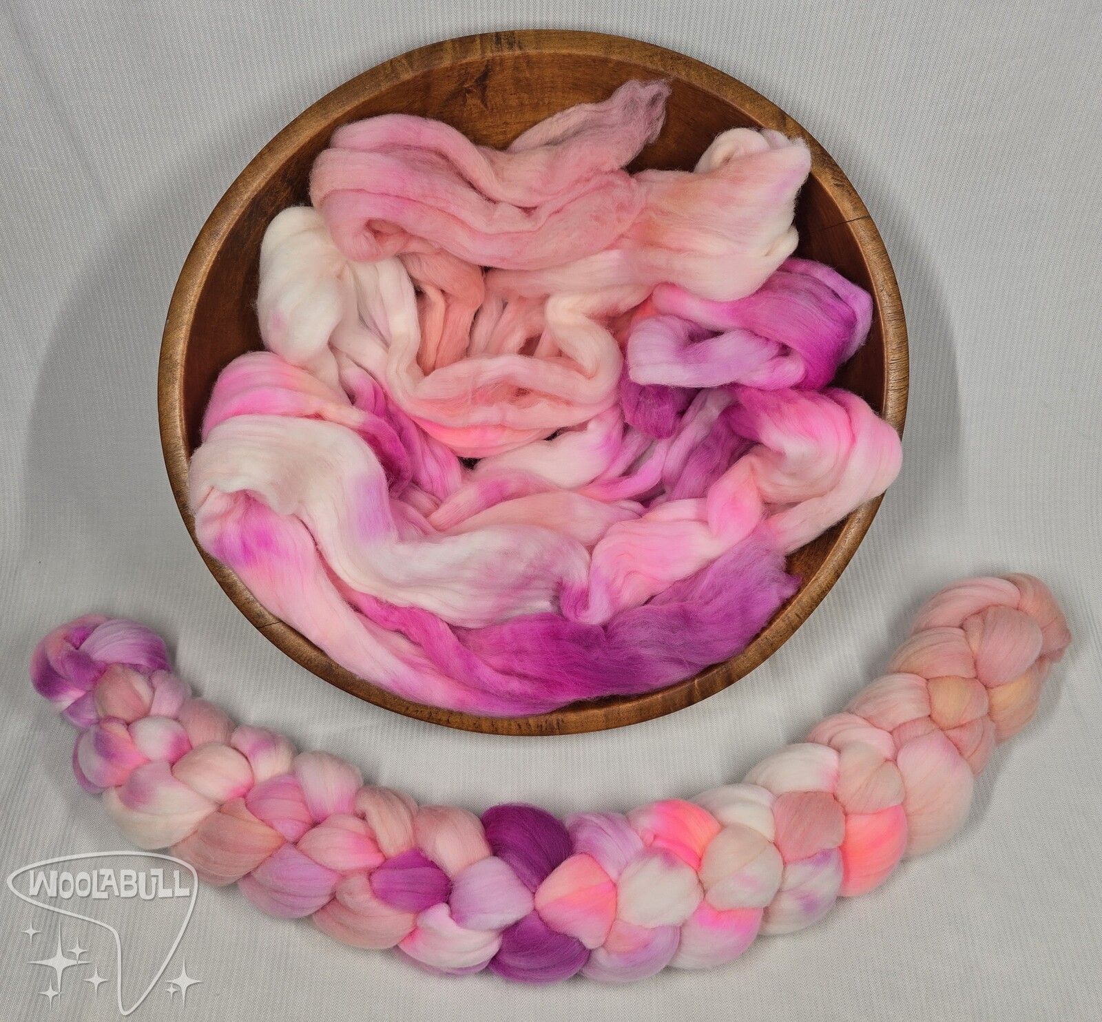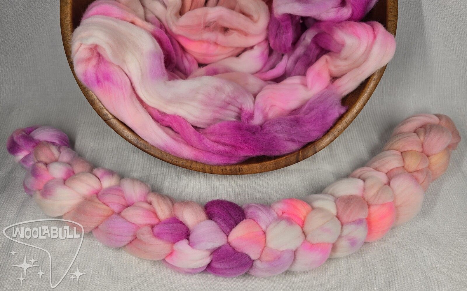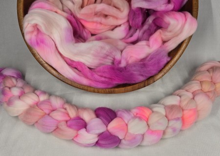 Lucious Pink Colorway Hand Painted Superfine Merino 4oz Braid