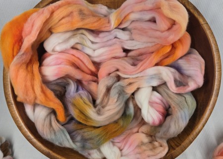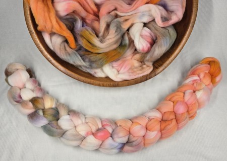 These Hand Painted braids are a great way to spin up something uniquely colorful! Spin it up for a sleek, soft yarn that highlights Merino wool from here in the USA.