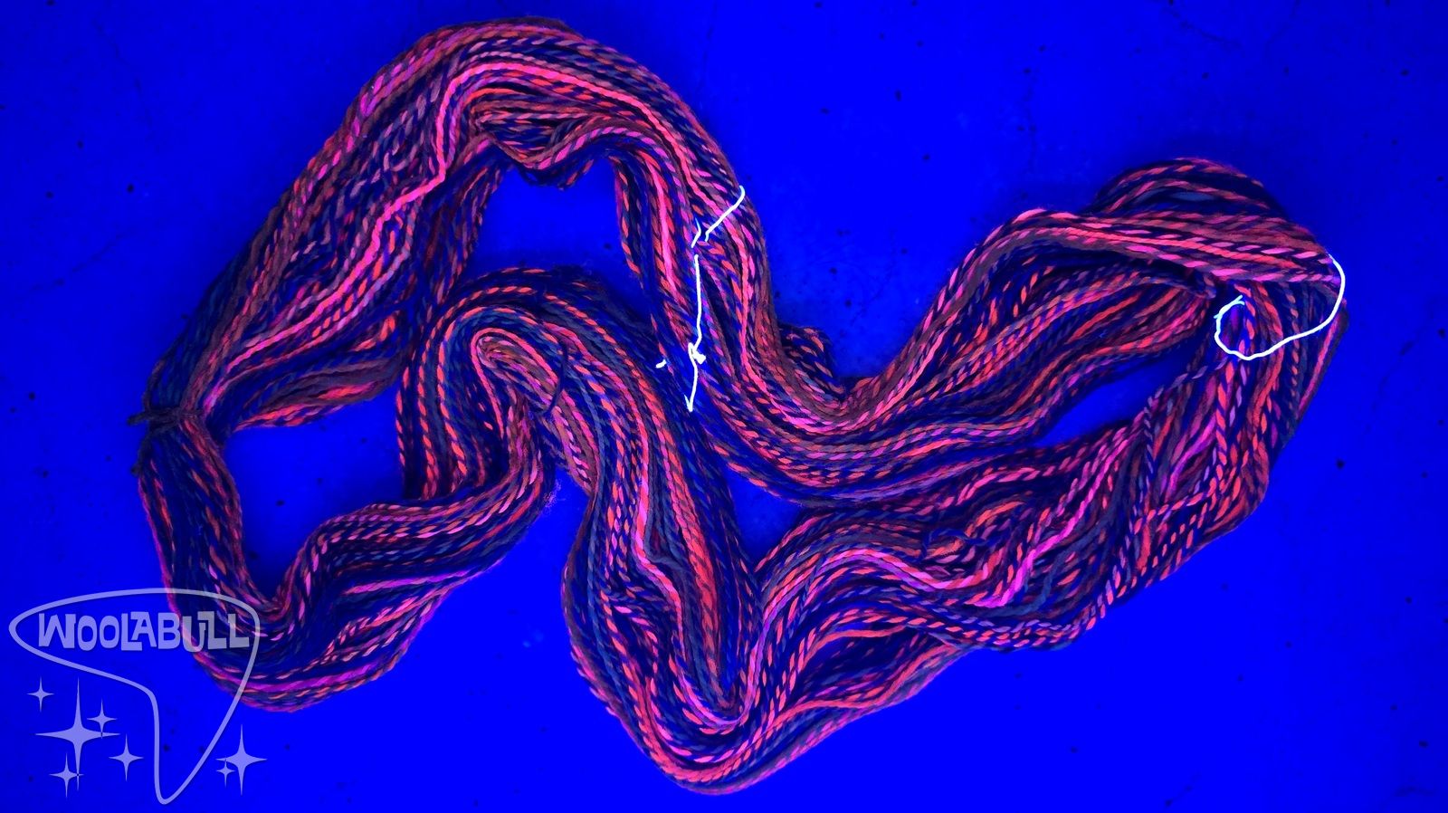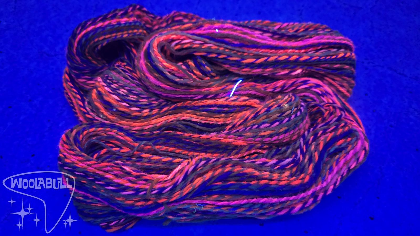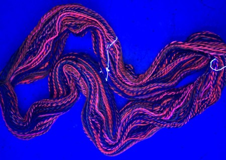 This hank does have a neon glow to it under blacklight as I used fluorescent dye when making it!
