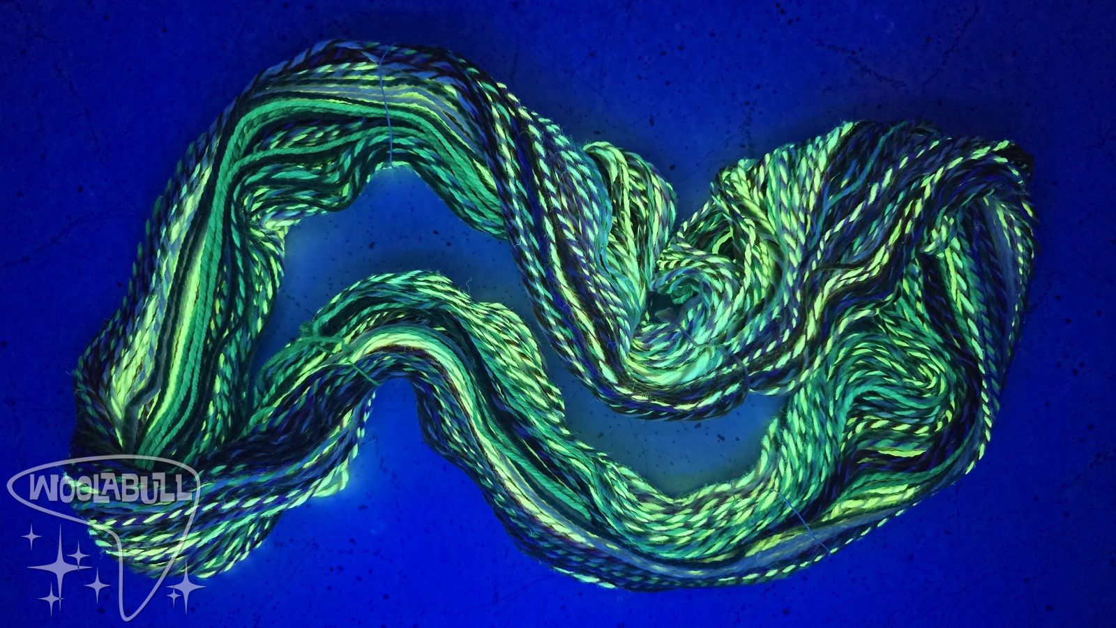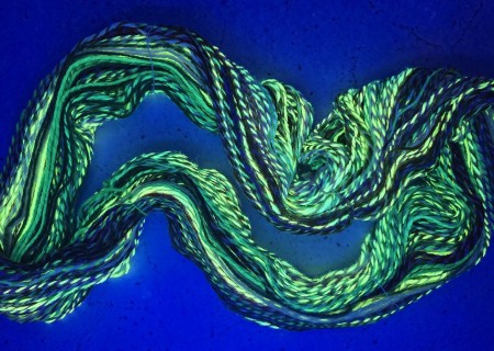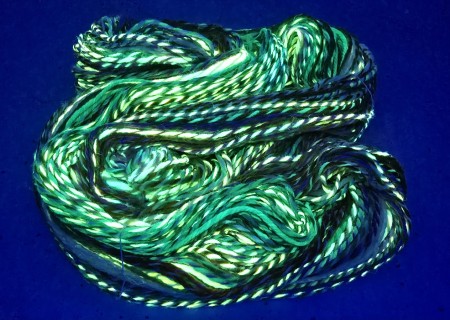 This hank does have a neon glow to it under blacklight as I used fluorescent dye when making it!