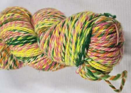 Using one of my own hand dyed combed top braids of merino wool, I spun up this unique creation, and it can be all yours! This hank is truly one of a kind and can help bring your next project to a whole new level.