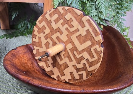 Wander the Labyrinth while you spin! Designed with my favorite Greek myth in mind (though the poor minotaur gets a bad rap), this spindle will draw you into it as you create your own handspun creation!Each Drop Spindle is hand made from laser cutting...
