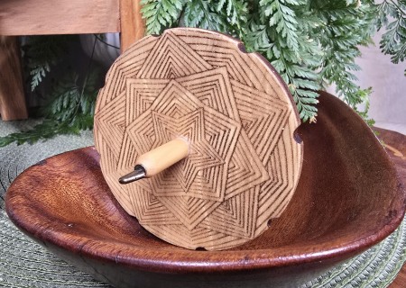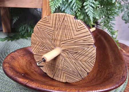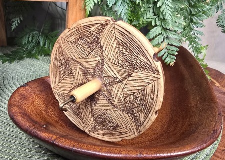A trippy geometric flower with just the line art! The geometric designs are wild to look at while spinning, just dont get dizzy!Each Drop Spindle is hand made from laser cutting my designs onto the front and back of 1/4" thick poplar wood, shaping th...