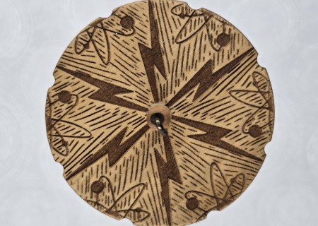 Light up your next spinning project with science! A blend of atomic and electric blend two styles into fun! . Each Drop Spindle is hand made from laser cutting my designs onto the front and back of 1/4" thick poplar wood, shaping the hardwood dowe...