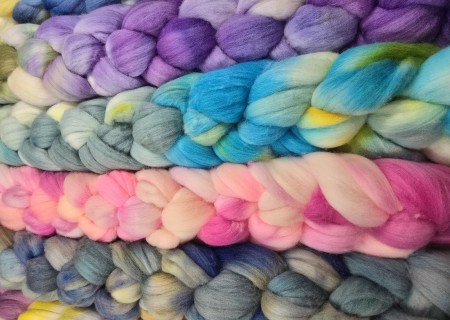 A tasty treat that wont leave your hands sticky! This colorful blend of blue and pink will blend together into a soft and durable project with plenty of vibrancy This hank does have a neon glow to it under blacklight as I used fluorescent dye when m...