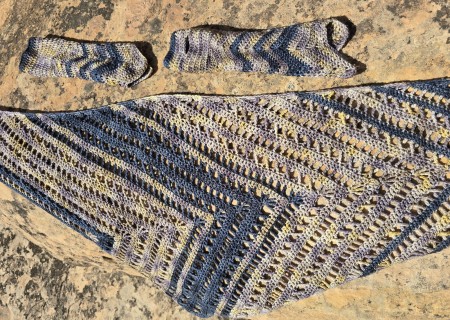 Hand Crochet Storm Clouds Shawl and Fingerless Gloves Set